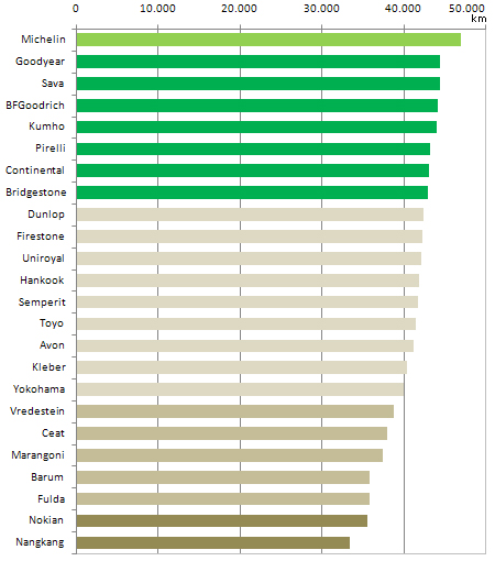 | Teste a pneus | Preço Jan2012 (€) | Piso | vida | ruído | consumo | GERAL | ||